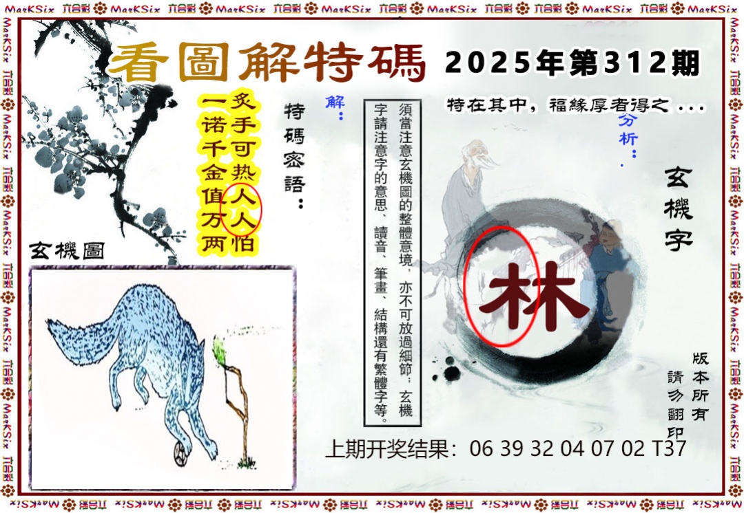 312期:单双中特单单单】开:00